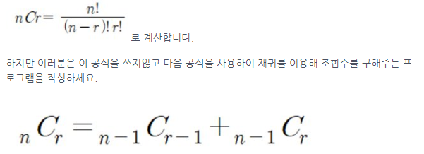 else return temp[n][r] = Combination(n-1, r-1) + Combination(n-1, r);