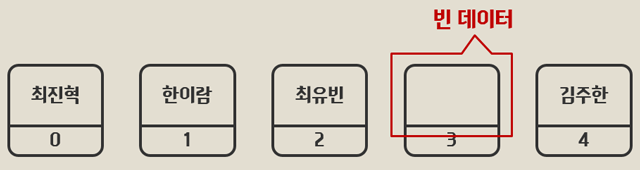 - Array 중간의 데이터를 삭제하면 삭제된 데이터의 index 위치에 그대로 빈 메모리가 생긴다. (메모리 낭비)