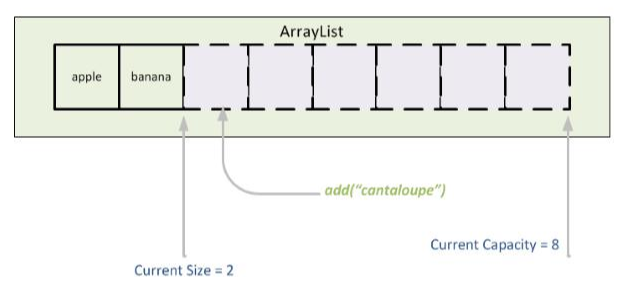 - 따라서 대량의 데이터를 추가/삭제하는 경우, 그만큼 복사가 많이 일어나게 되어 성능 저하가 일어날 수 있다. 즉, add() 메서드 실행 시, 더 큰 용량의 배열을 만들어 데이터를 옮기는 것이다.