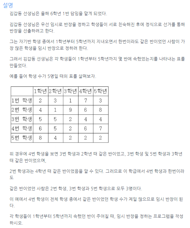 자기 자신과 같은 반일 경우의 예외는 제외하지 않았다. 모든 학생이 동일하게 각 학년에서 자신과 같은 반이기 때문.