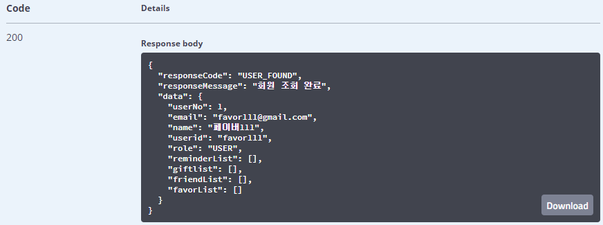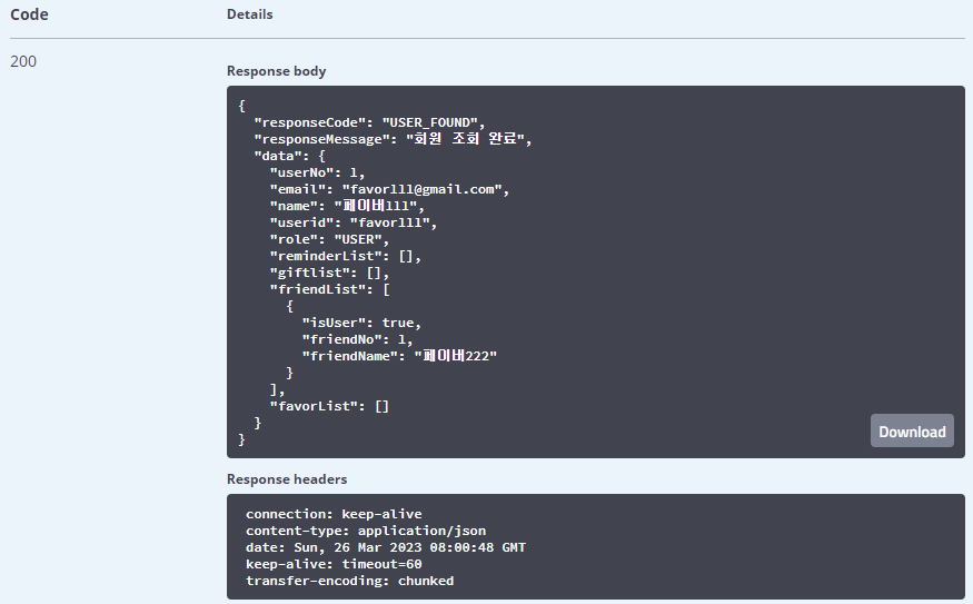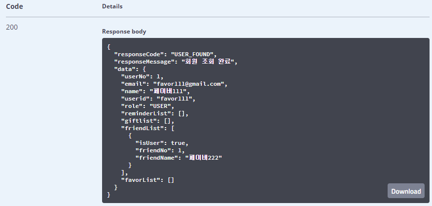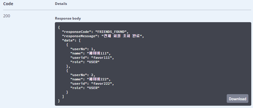 User “페이버222”를 User “페이버111”의 Friend로 추가 (UserFriend)