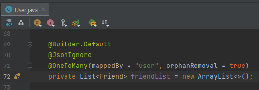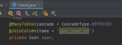 다른 매핑된 도메인 사이에서는 Cascade가 잘 일어났지만 User와 Friend 도메인 사이에서는 그렇지 않았다. 이는 어플의 기획에 의한 Friend의 특수함 때문이다.