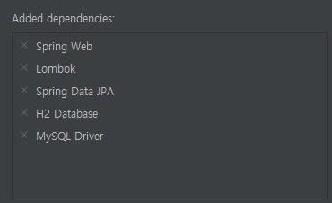 RDBMS 의 한 종류인 H2와 MYSQL도 추가해준다.