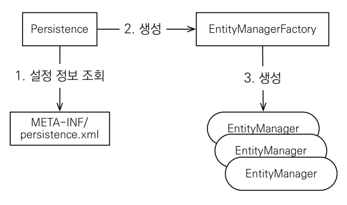 - Persistence 클래스가 META-INF/persistence.xml 설정정보를 조회한다.