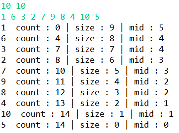 // System.out.println(out + " count : " + count + " | size : " + deque.size() + " | mid : " + mid);