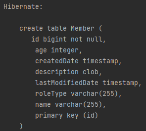 - 기본값 : 필드의 자바 타입과 방언 정보를 사용해서 적절한 컬럼 타입